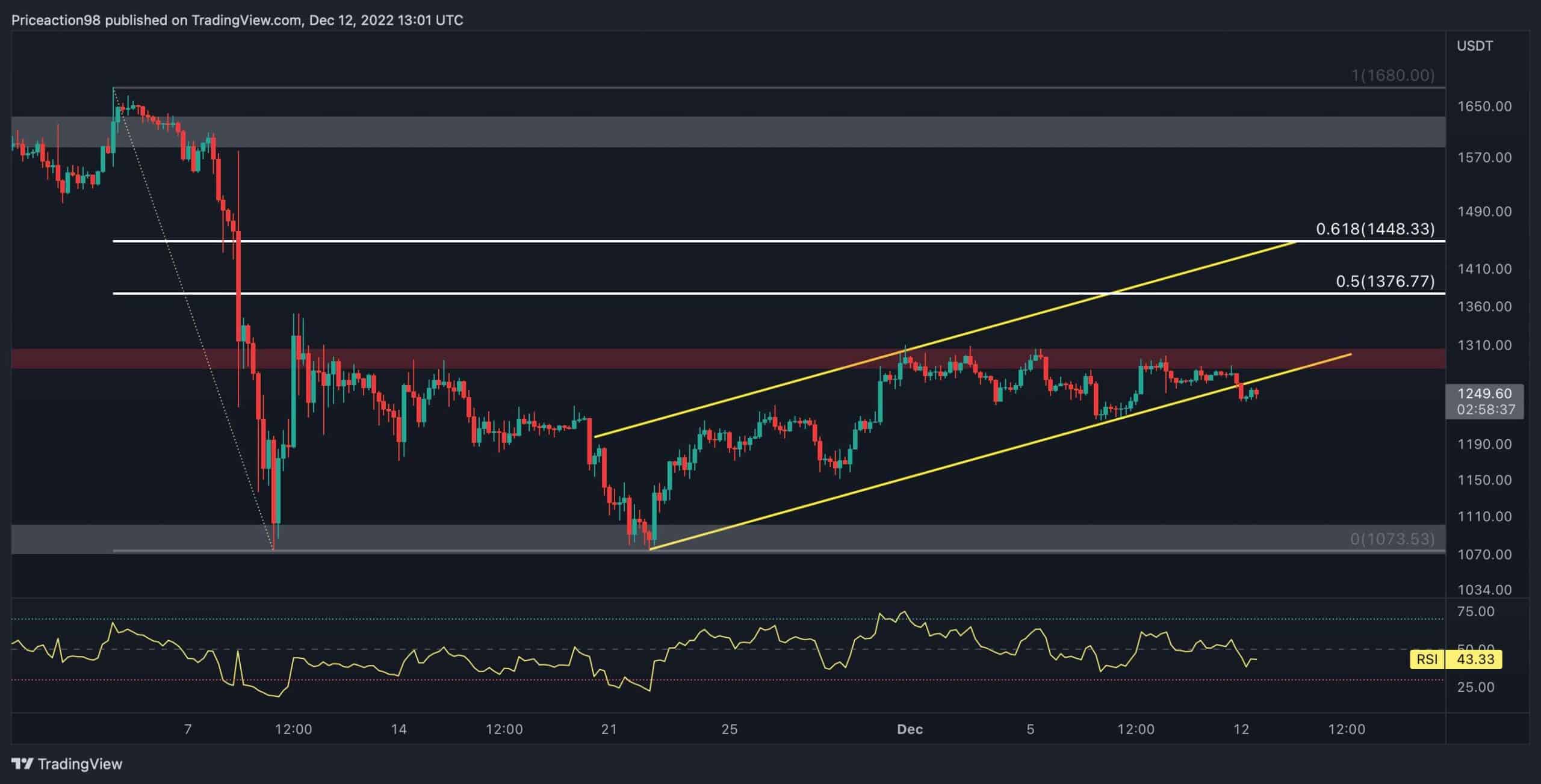 In light of these considerations, the $1300-$1400 price region is currently the most vital resistance area, and a valid breakout should return the bullish sentiment and result in a fresh price spike.