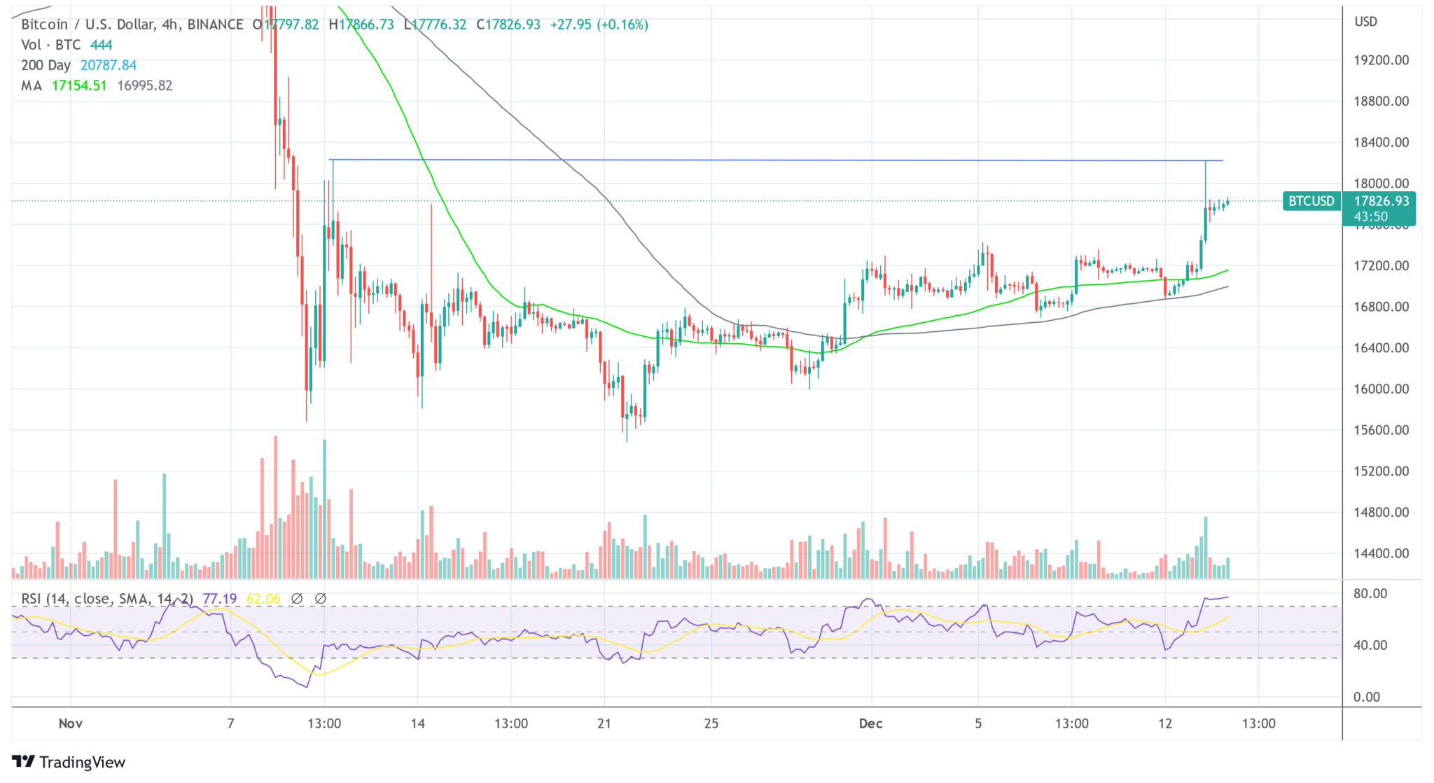 At press time, BTC was trading at $17,882, with today’s FOMC meeting starting at 14:30 ET very likely to have a significant impact on price action in the coming weeks.