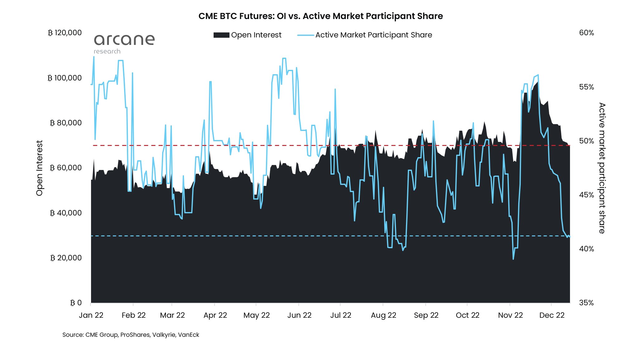 The share of non-exchange-traded funds (ETFs) in the open interest has hit an all-time low of nearly 41%.