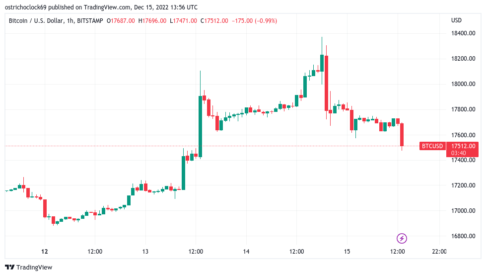 BTC/USD traded at around $17,500 at the time of writing, data from Cointelegraph Markets Pro and TradingView showed, just before the start of trading on Wall Street.