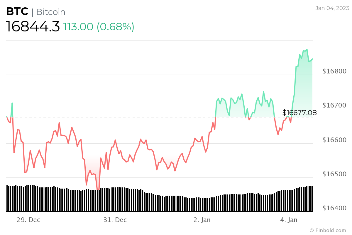 By press time, Bitcoin was trading at $16,844, having made minor gains of less than 1% in the last 24 hours. On the weekly chart, BTC was up over 1%.