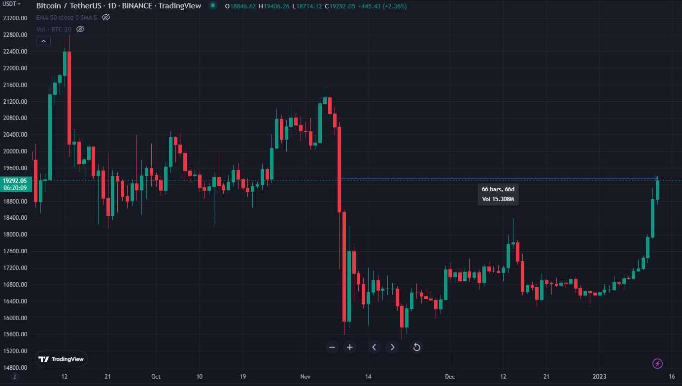 On Thursday, the price of bitcoin increased by more than three percent, and it briefly traded above $19,000 for the first time in eight weeks. After breaking above December highs of approximately $18,353, the mother coin traded for approximately $19,292 during the early trading session in Asia.