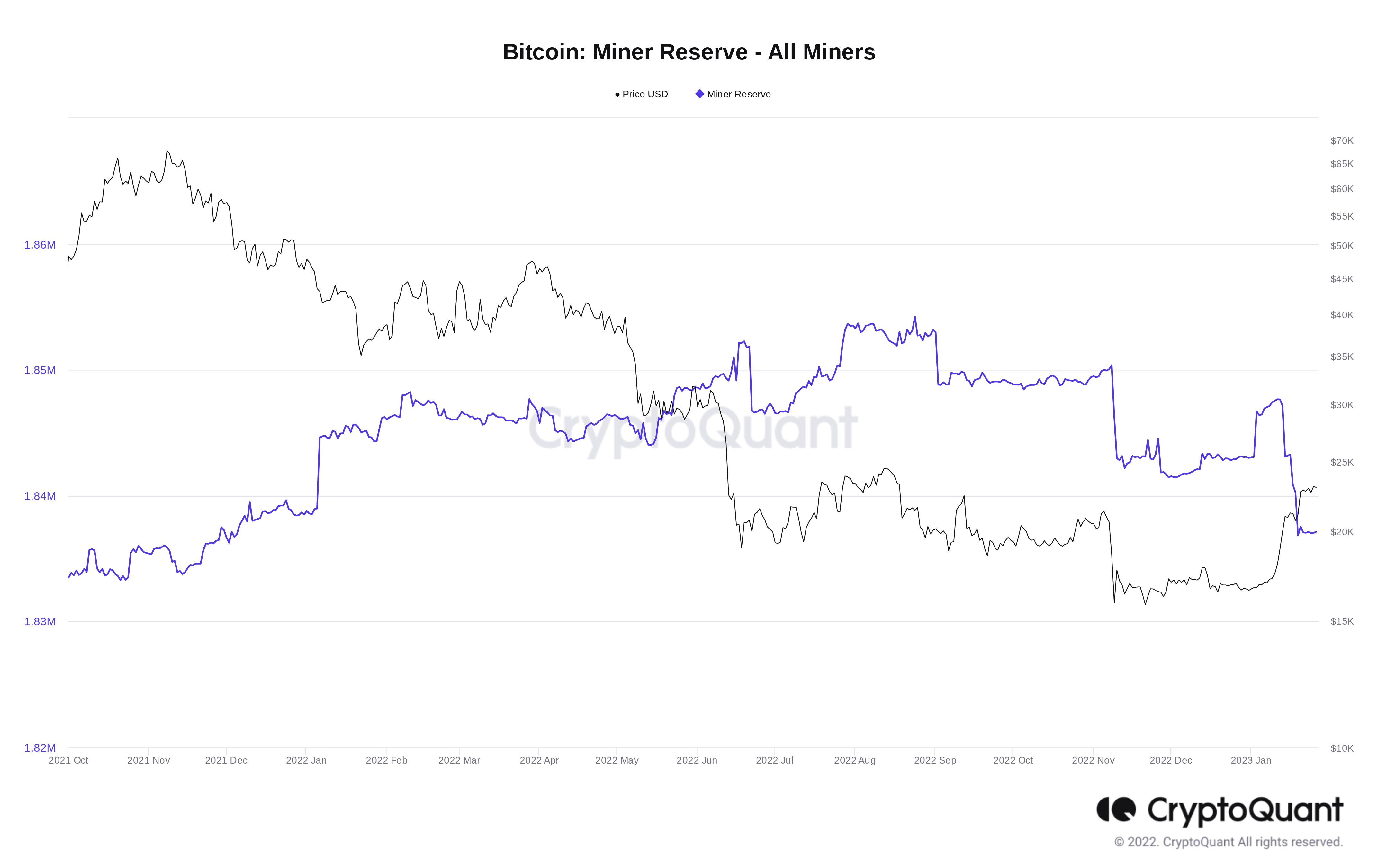 At 1,837,138 BTC, miners’ reserves currently stand at their lowest since December 2021.
