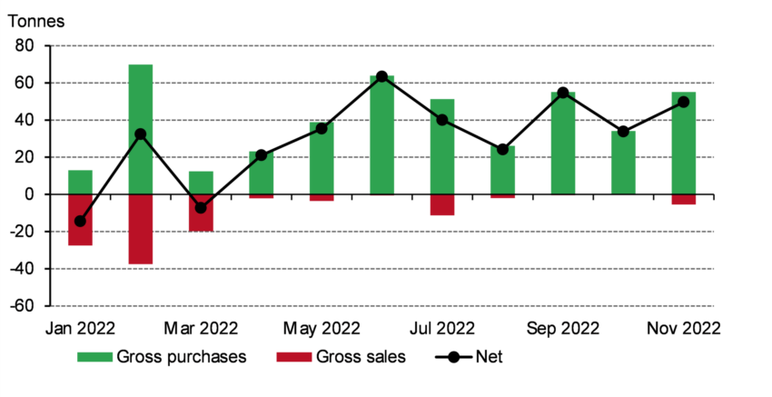 “The central bank sector has been one of the highlights of the gold market in 2022, having bought a net 673 tonnes between Q1 and Q3. Looking ahead to the full year picture, it’s likely that central banks accumulated a multi-decade high level of gold in 2022,” noted Krishan Gopaul, senior analyst EMEA at WGC.