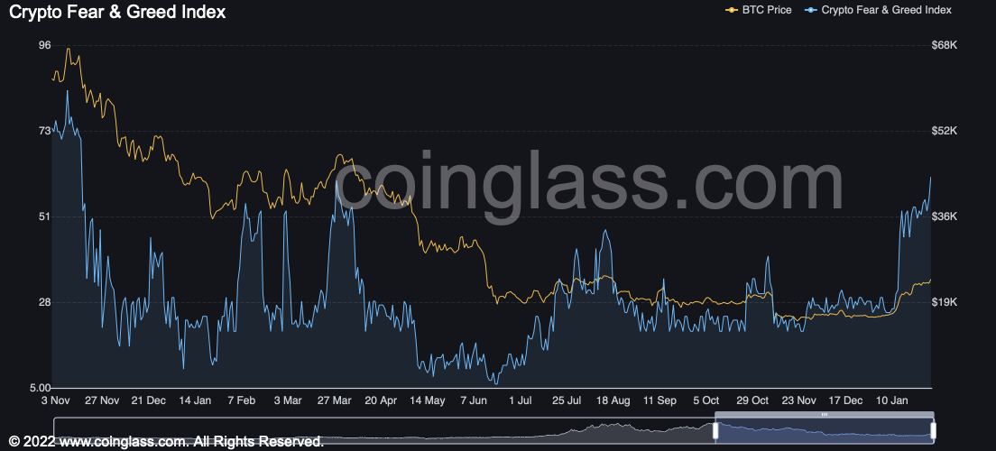 In particular, as of January 30, the index registered a reading of 61, representing greed, the highest level since November 2021 when the crypto market was in a bull run, according to data by Coinglass.