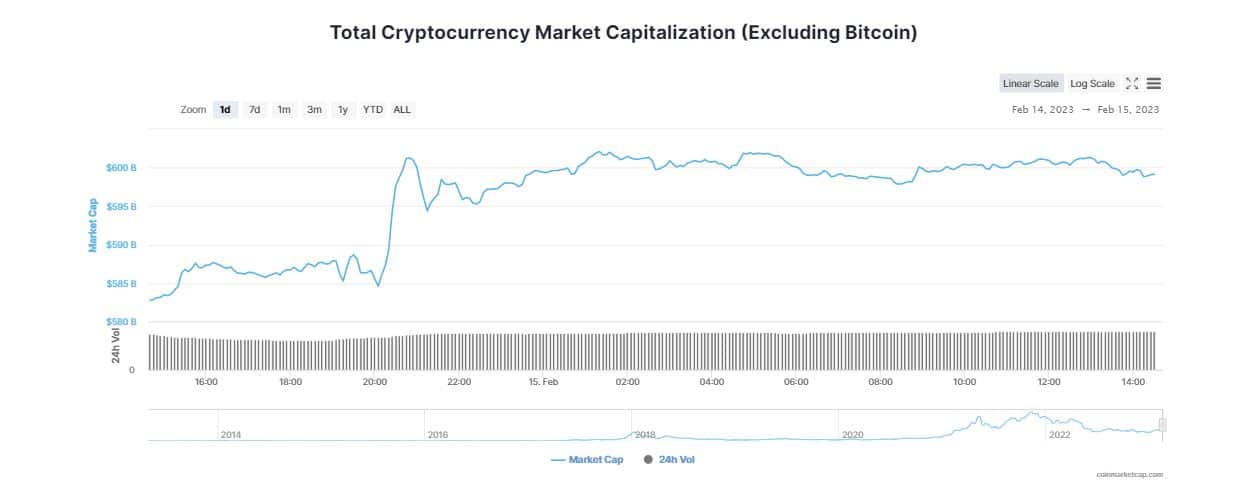 The total crypto market volume over the last 24 hours soared more than 5% to $59 billion. The digital assets sector posted a modest rise as the January inflation report suggested the Fed could keep rates higher for longer. In a statement, Edward Moya, senior market analyst at OANDA claimed,