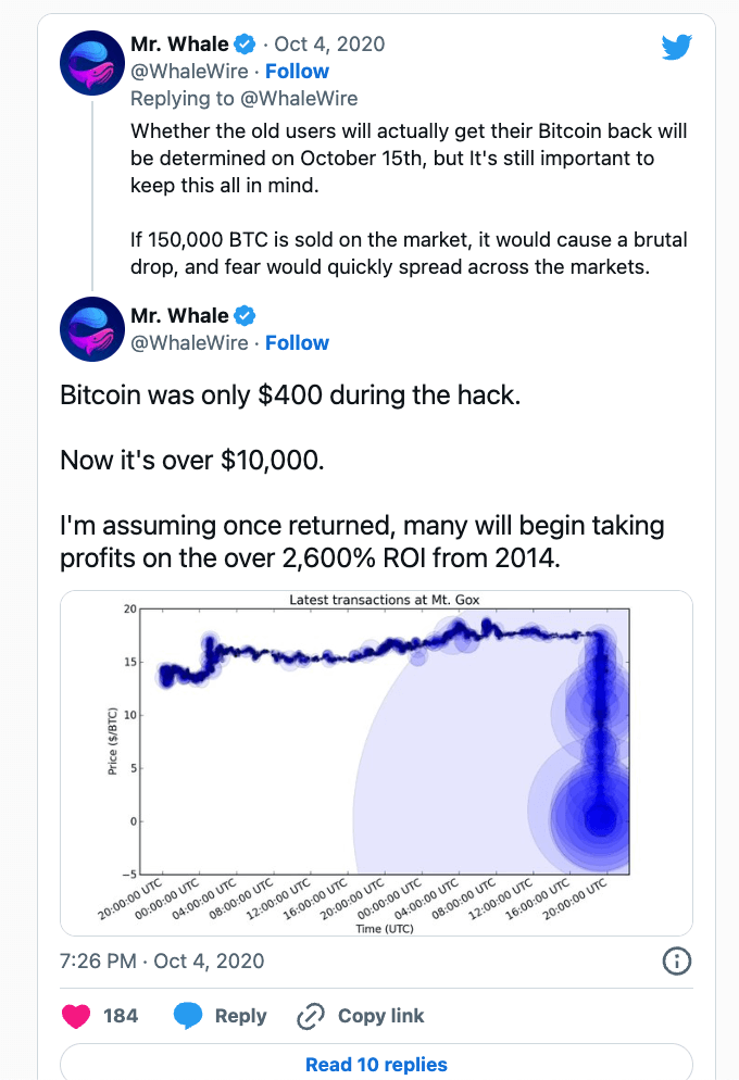 With the expected reimbursement now likely only months away, analysts worry that a major sell-off of Bitcoin could follow.
