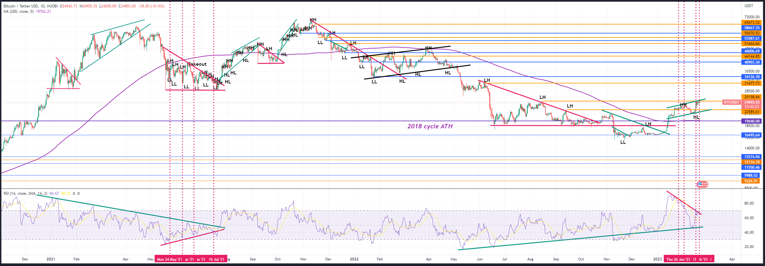 “We are grinding $25,000 once again here, but the question remains do we stay above that resistance zone, or deviate and come back down,” part of Twitter commentary on the day stated.