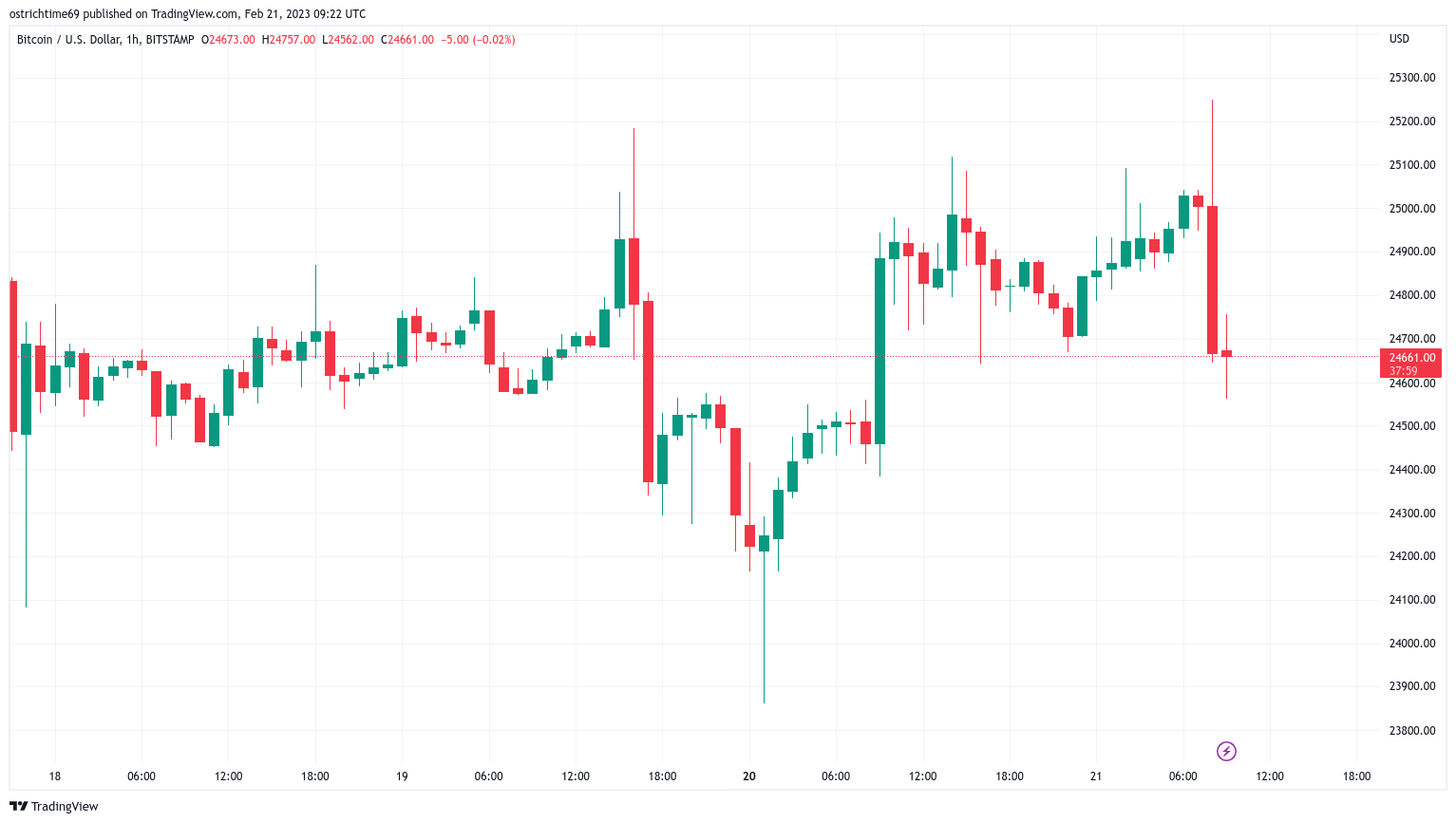Data from Cointelegraph Markets Pro and TradingView showed BTC/USD hitting $25,250 on Bitstamp.