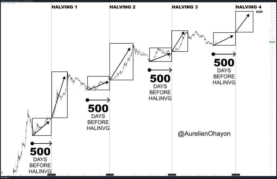 In the post, the analyst stated that the “Bitcoin bull run begins.” He based his beliefs on historical data that indicates that 500 days before a BTC halving the price of the crypto goes up. He then continued by stating that after the halving, BTC’s price has increased even more.