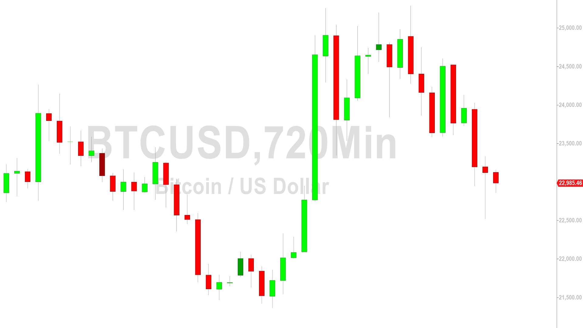 Bitcoin (BTC/USD) remained on the defensive early in the Asian session as the pair traded around its weakest levels in more than one week after Stops were elected below the 22943, 22832, and 22770 areas, downside price objectives associated with selling pressure around the 24749 and 24600 levels. Traders pushed BTC/USD as low as the 22520 area during the pullback, representing a test of the downside price objective around the 22587 area that is associated with selling pressure around the 24132 area. Bears were unable to test the 22366 area that represents a downside price objective associated with selling pressure around the 24262 and 23451 levels. Additional downside price objectives include the 22366, 22074, 21949, 21919, 21756, 21386, 21161, 20982, 20471, 20209, 19886, and 19251 levels.