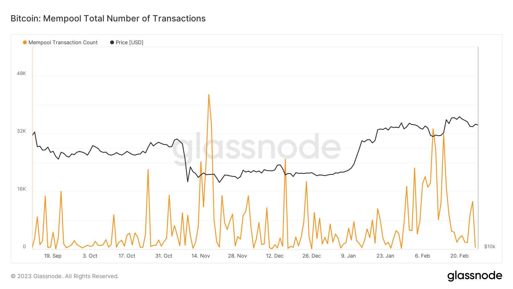 Despite ordinals resulting in a “fuller mempool” for Bitcoin, research noted last week, miners have still managed to clear it, Glassnode shows.