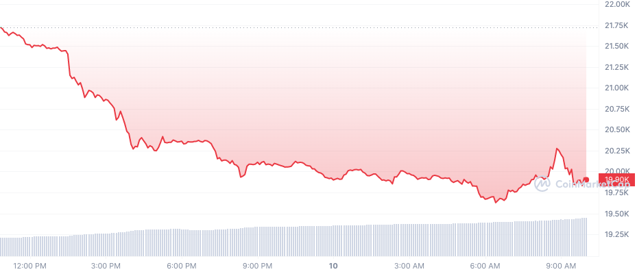 Crypto analyst and Youtuber, Crypto World, describes his visions and expectations for the price of bitcoin in the upcoming days. In the past three weeks, bitcoin has been on a bearish run from $25,000 down to $20,000 marking an 8.5% decline in the past 24 hours.