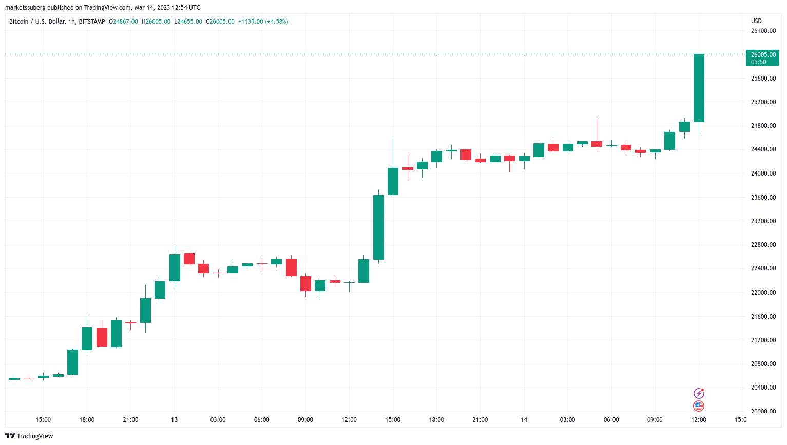 Bitcoin (BTC) spiked above $26,000 on March 14 as United States Consumer Price Index (CPI) data showed mixed inflation signals.