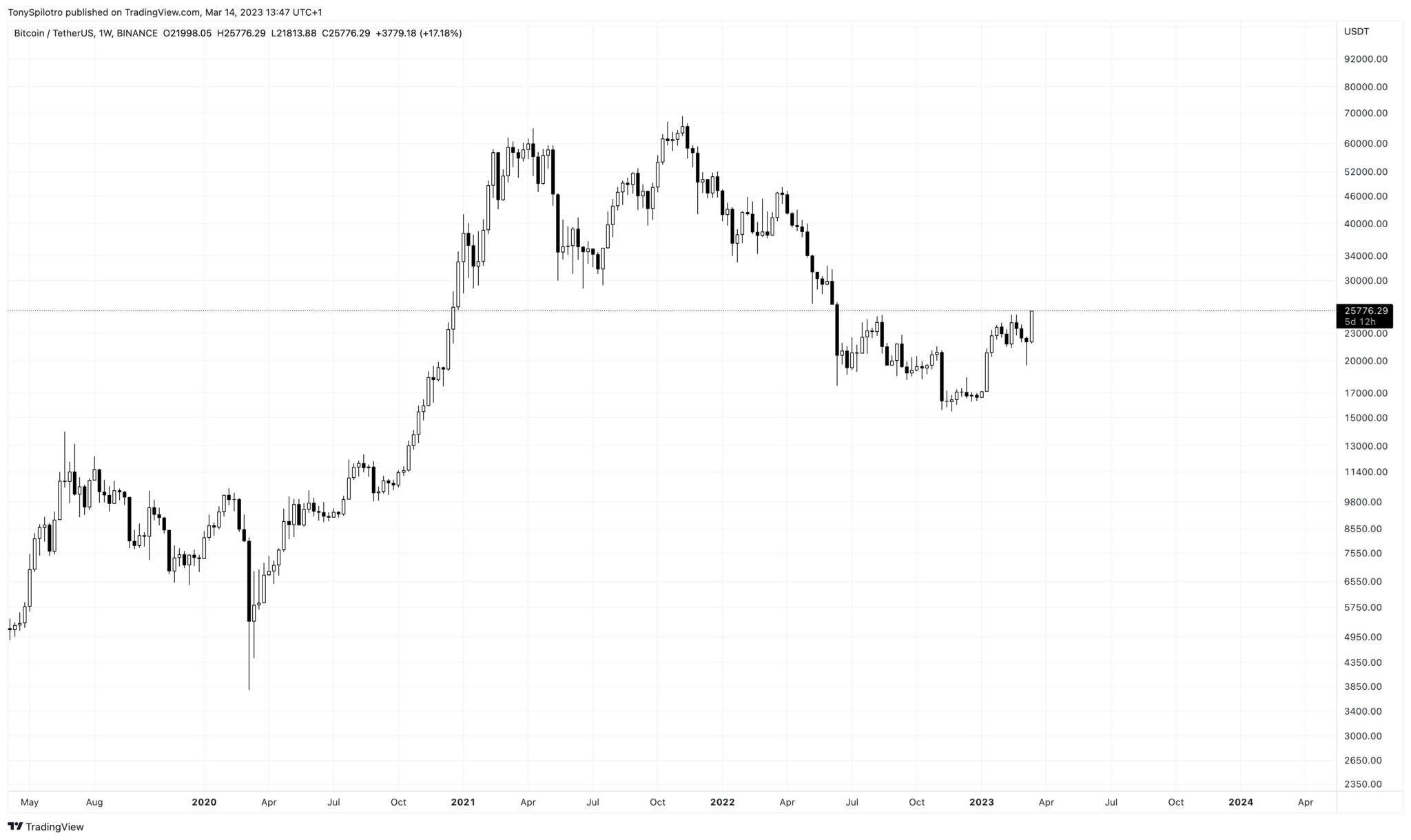 The first ever cryptocurrency has a new bullish narrative behind it, acting as a safe haven from systematic risk from the banking sector. Will this rally sustain and turn into something more? Or will this resistance level leave bulls rejected again?