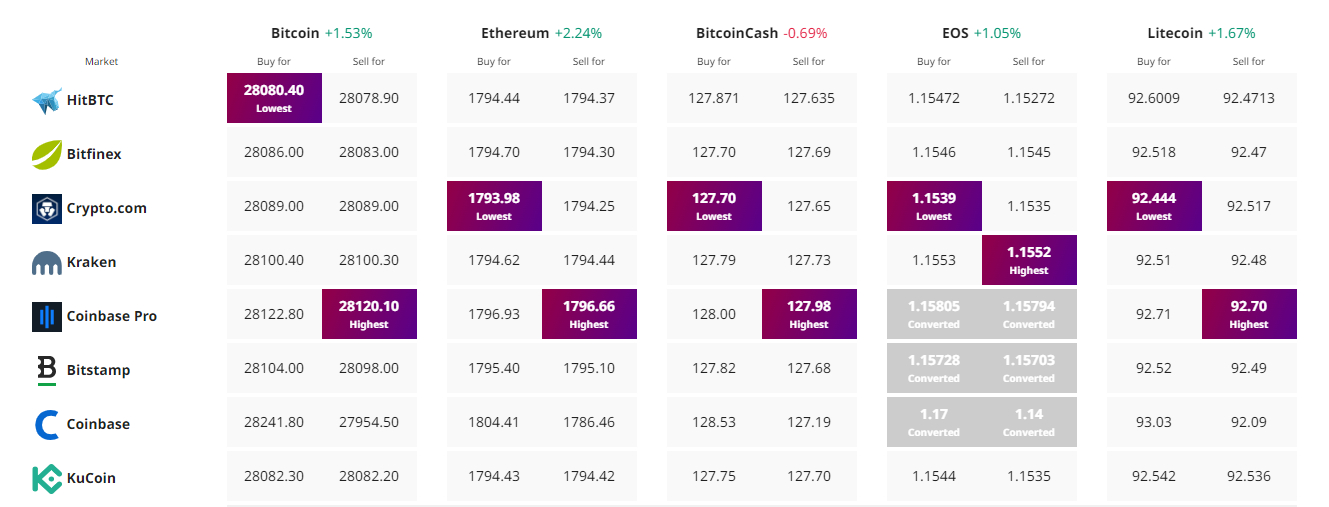 Find The Best Price to Buy/Sell Cryptocurrency