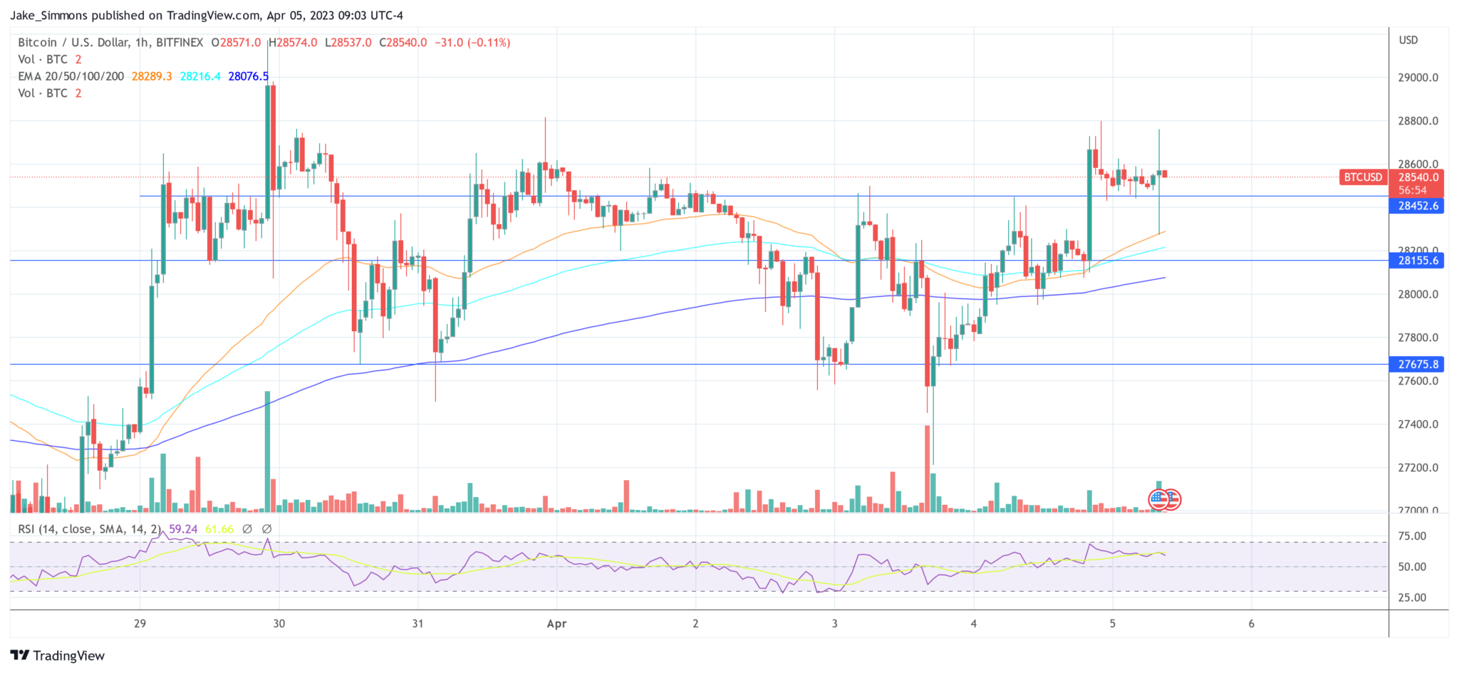 Today’s announcement states that MicroStrategy, along with its affiliates, acquired approximately 1,045 Bitcoins for approximately $29.3 million in cash between March 24, 2023 and April 4, 2023.