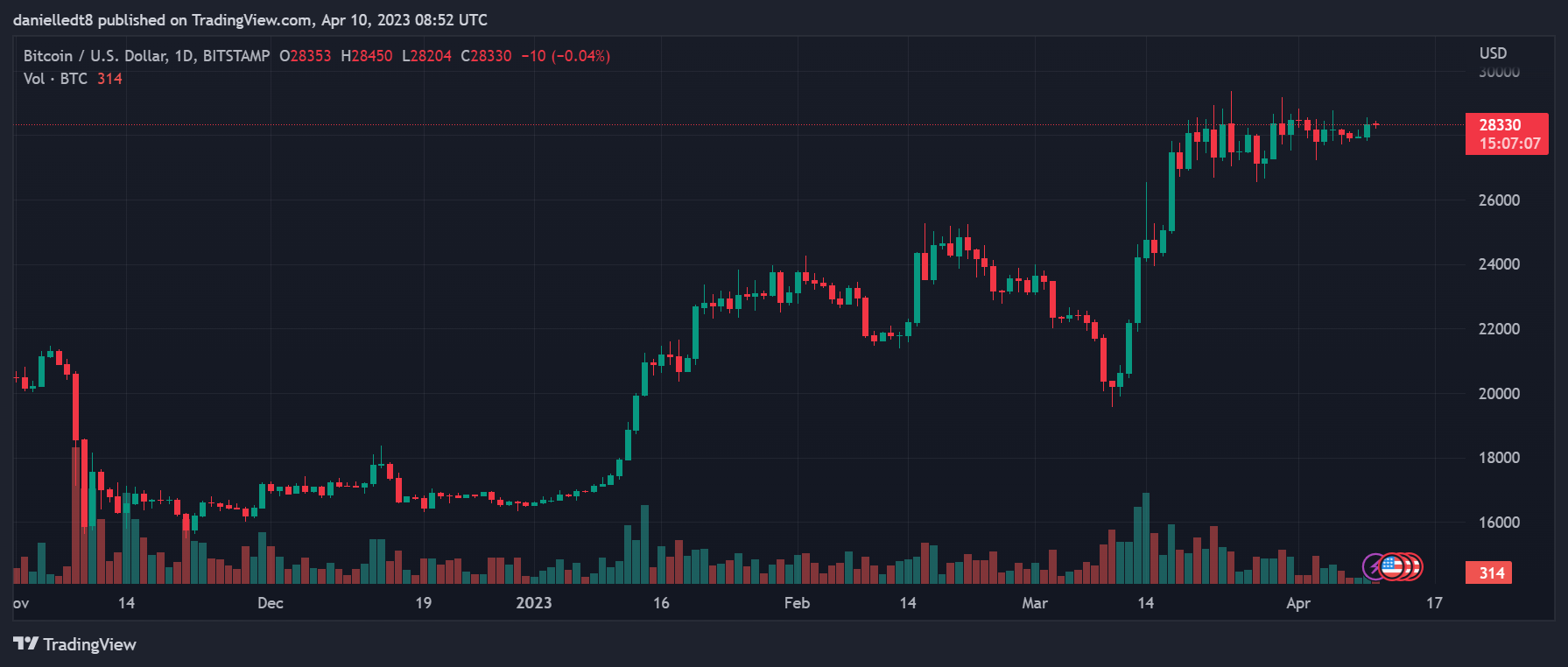 CoinMarketCap indicates that BTC is currently trading hands at $28,336.77 after a 1.65% price increase over the last 24 hours. The crypto king is also still in the green by about 0.02% over the last week.