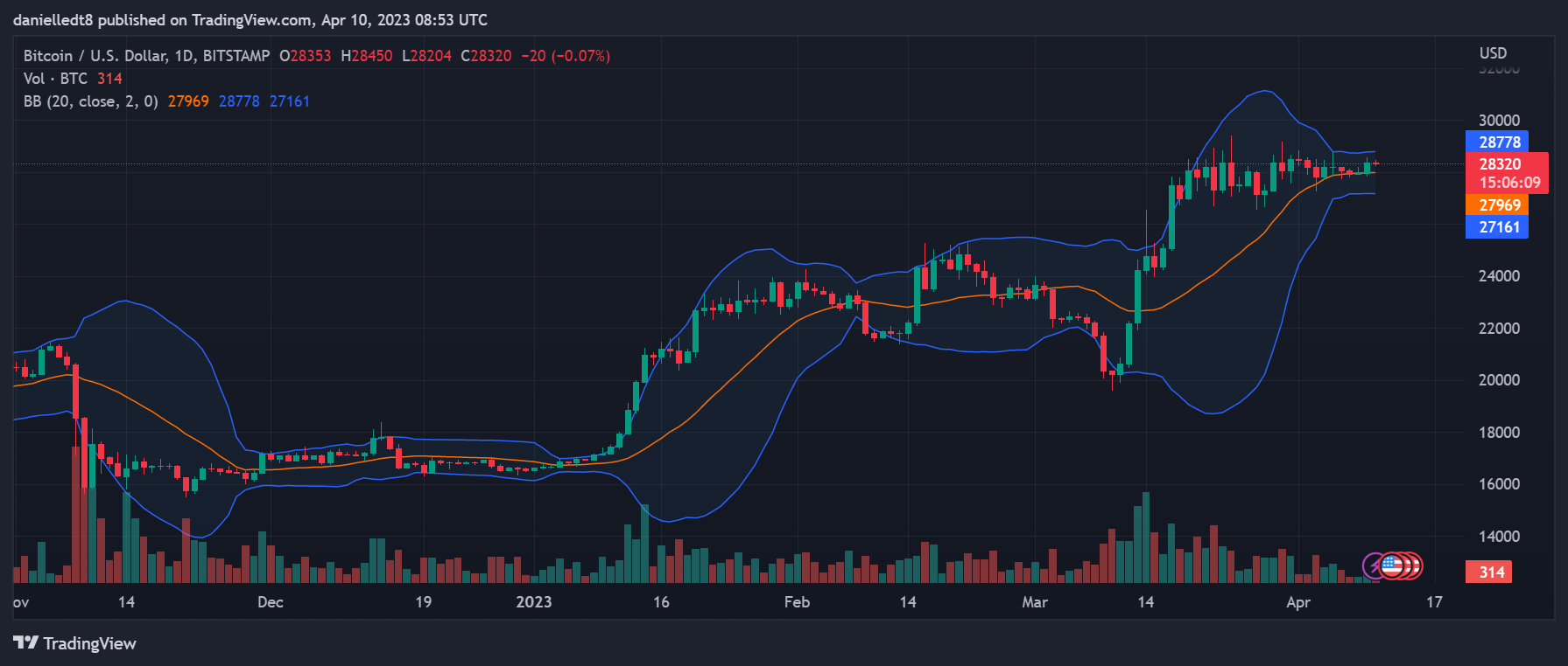 Another technical indicator to take note of is BTC’s Bollinger Bands are extremely narrow at the moment. That could indicate that the market is awaiting the outcome of the upcoming release of the newest US economic data, which supports the analyst’s thesis that BTC’s price could experience a breakout soon.