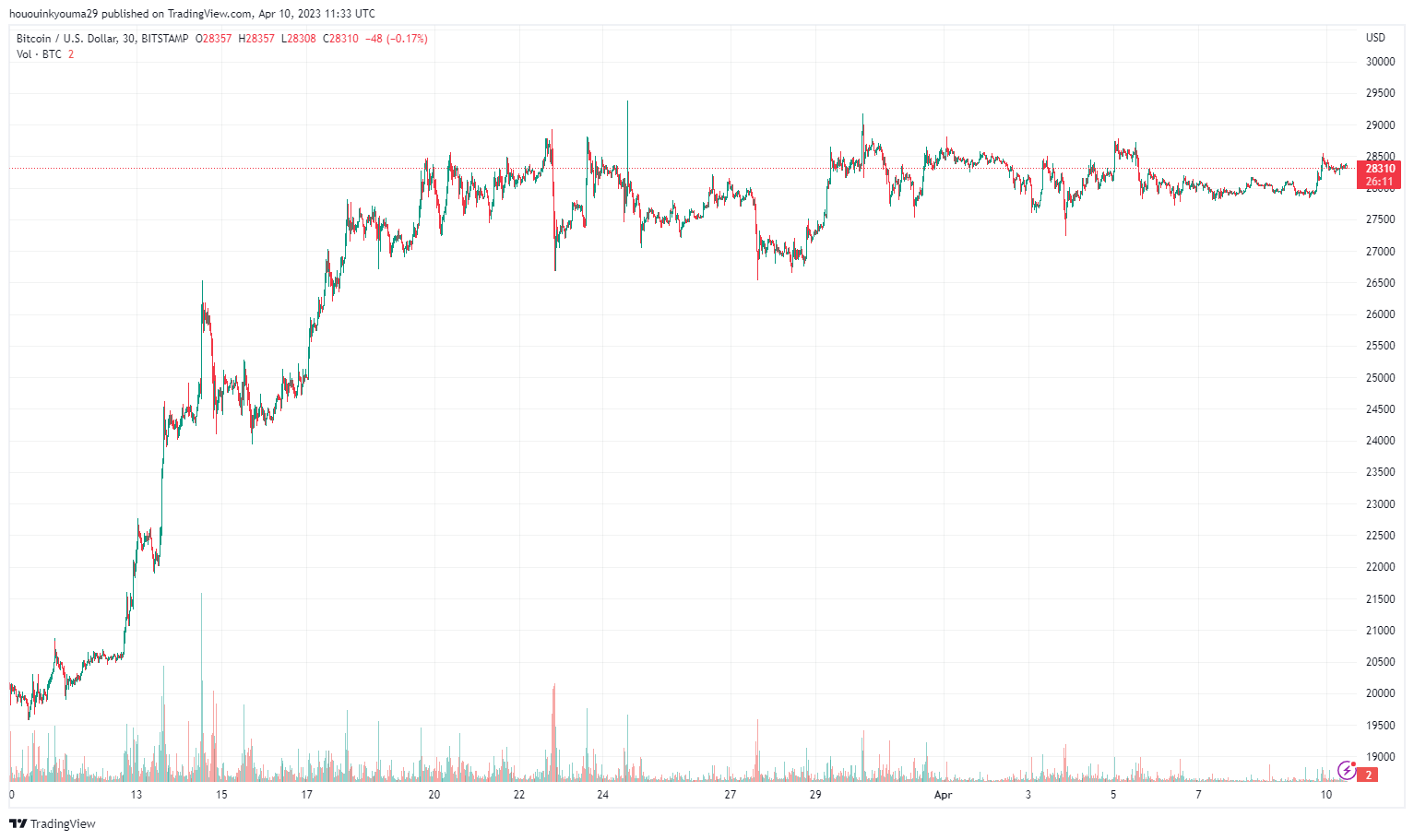 At the time of writing, Bitcoin is trading around $28,300, up 1% in the last week.