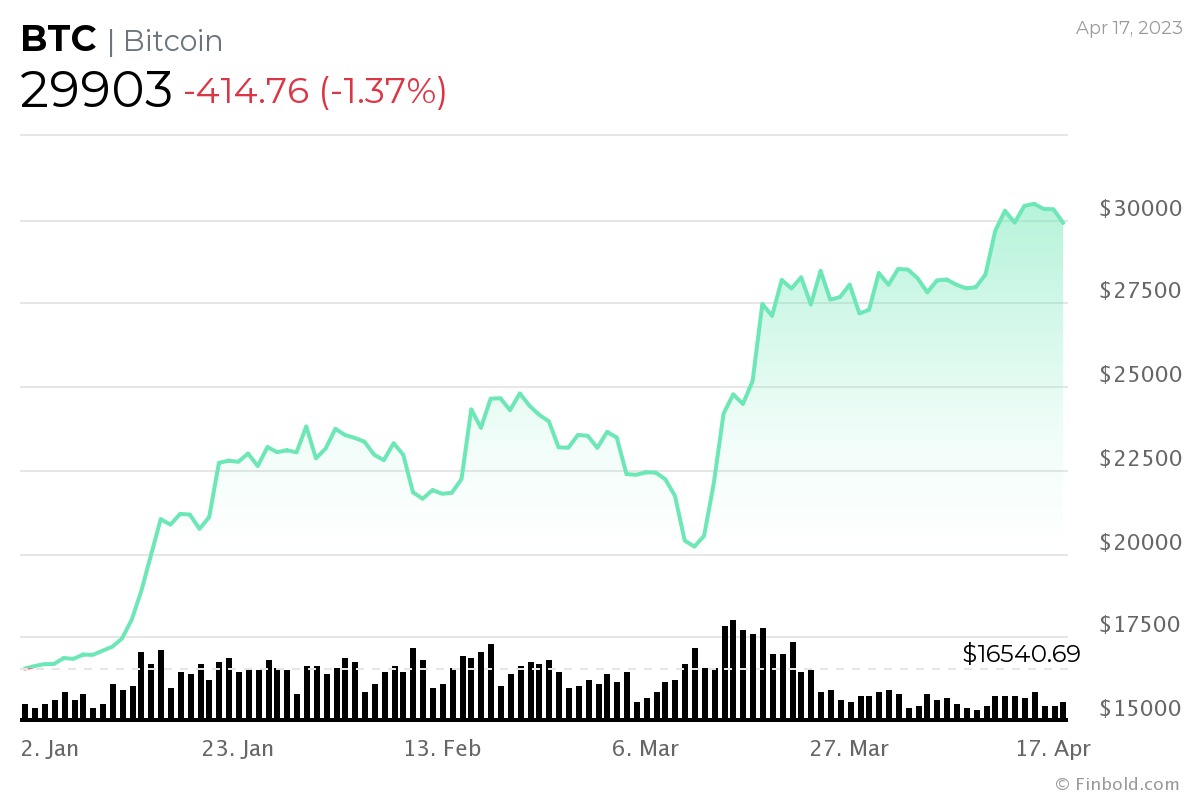At press time, Bitcoin was trading at the price of $29,904, recording a decrease of 1.37% on the day but still holding on to the gains of 5.47% across the previous week and of 8.87% in the last 30 days, whereas it has gained nearly 80% on its year-to-date (YTD) chart.