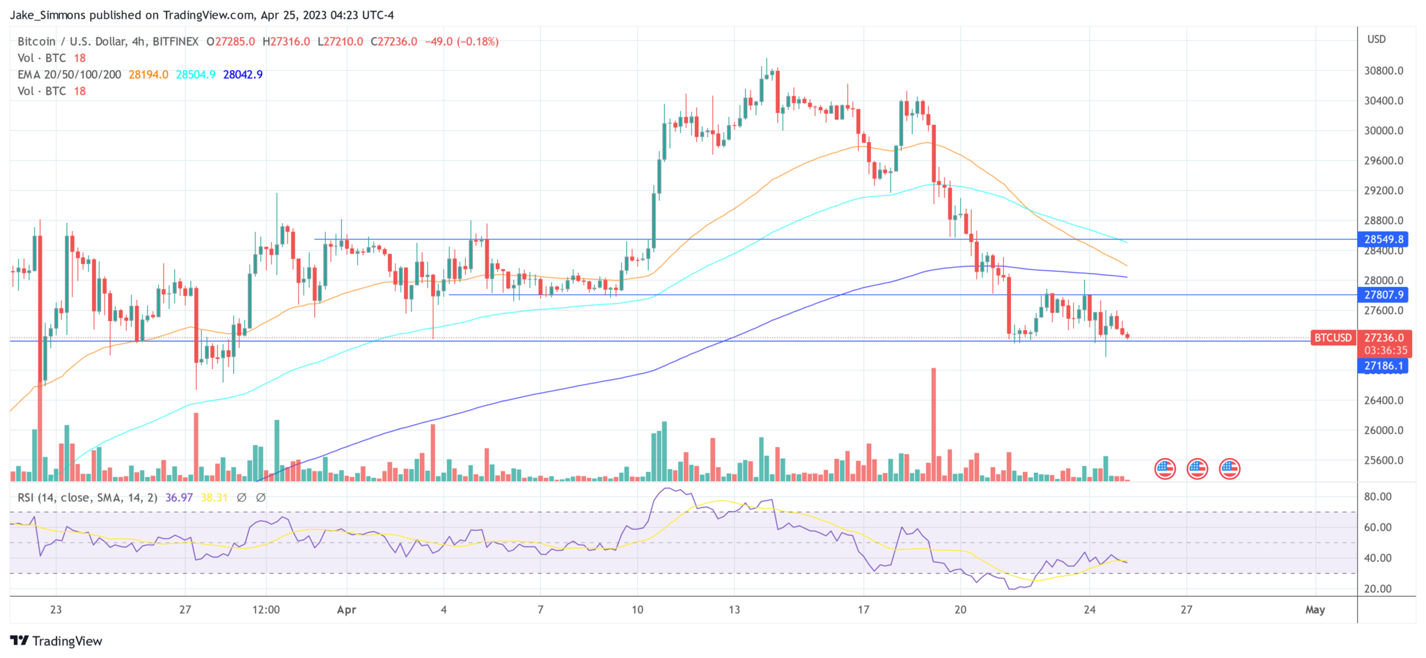 The Bitcoin (BTC) price has been trading in a range between $27,000 and $28,000 since Friday last week, with $27,800 currently being the most important resistance level to kick off a move to the upside. As recently as last Tuesday, BTC was trading above $30,000 before plunging more than 10%.