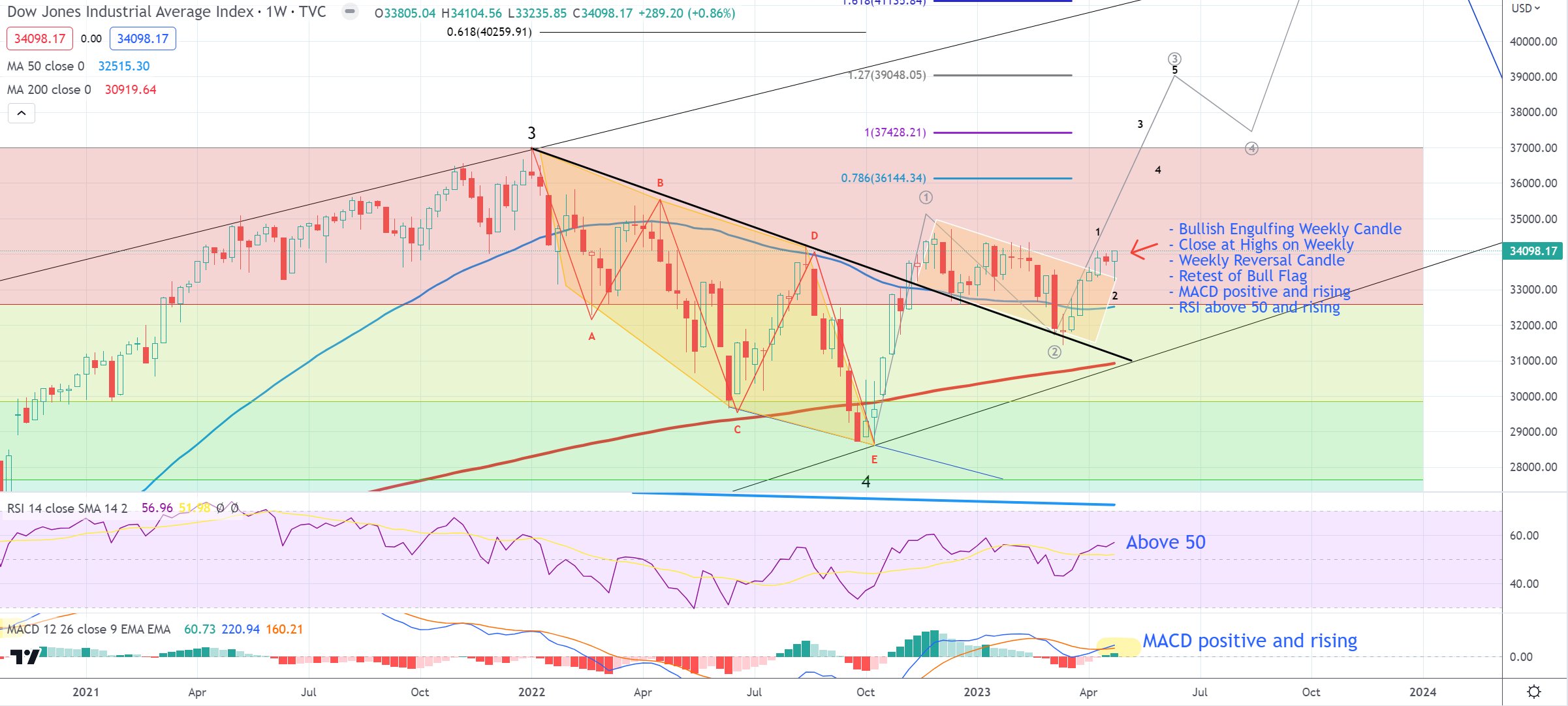 The macro expert also says that multiple indicators are flashing bullishness for the Dow Jones Industrial Average (DJIA) index, including the Relative Strength Index (RSI), a technical indicator used in trading to gauge an asset’s momentum, and the moving average convergence divergence (MACD), a trend-following indicator.