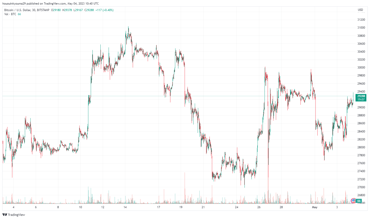 At the time of writing, Bitcoin is trading around $29,200, up 1% in the last week.