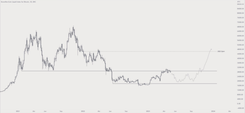 In this scenario, the next breakout above $30,000 could occur in the late 2023 and early 2024 period and can be the starting point for further growth.