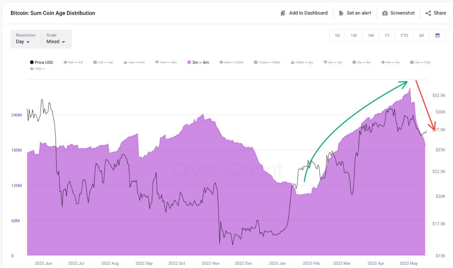 Specifically, investors who have bought Bitcoin at a level of $28,600, and have held on to it for between three and six months, have likely decided to realize their profits, according to the observations of analyst Axel Adler Jr. over at the cryptocurrency analytics platform CryptoQuant shared on May 18.