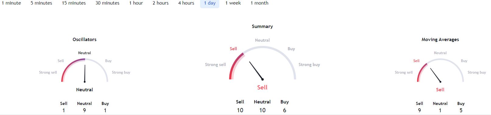 Under technical analysis, Bitcoin is dominated by bearish sentiments. A summary of the one-day gauges from TradingView aligns with the ‘sell’ sentiment at 10 while moving averages are for ‘sell’ at 9. Oscillators are neutral at 9.
