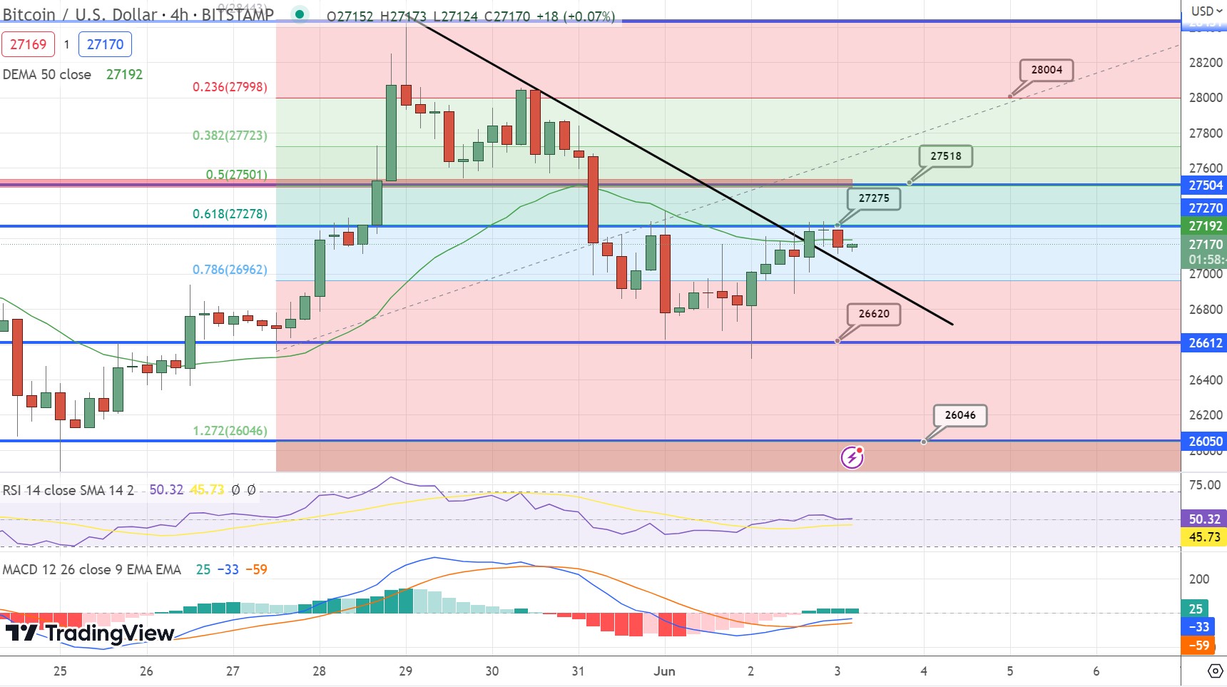 On the other hand, if Bitcoin manages to break above $27,275, the next target could be around $27,500 or even higher near $27,800.