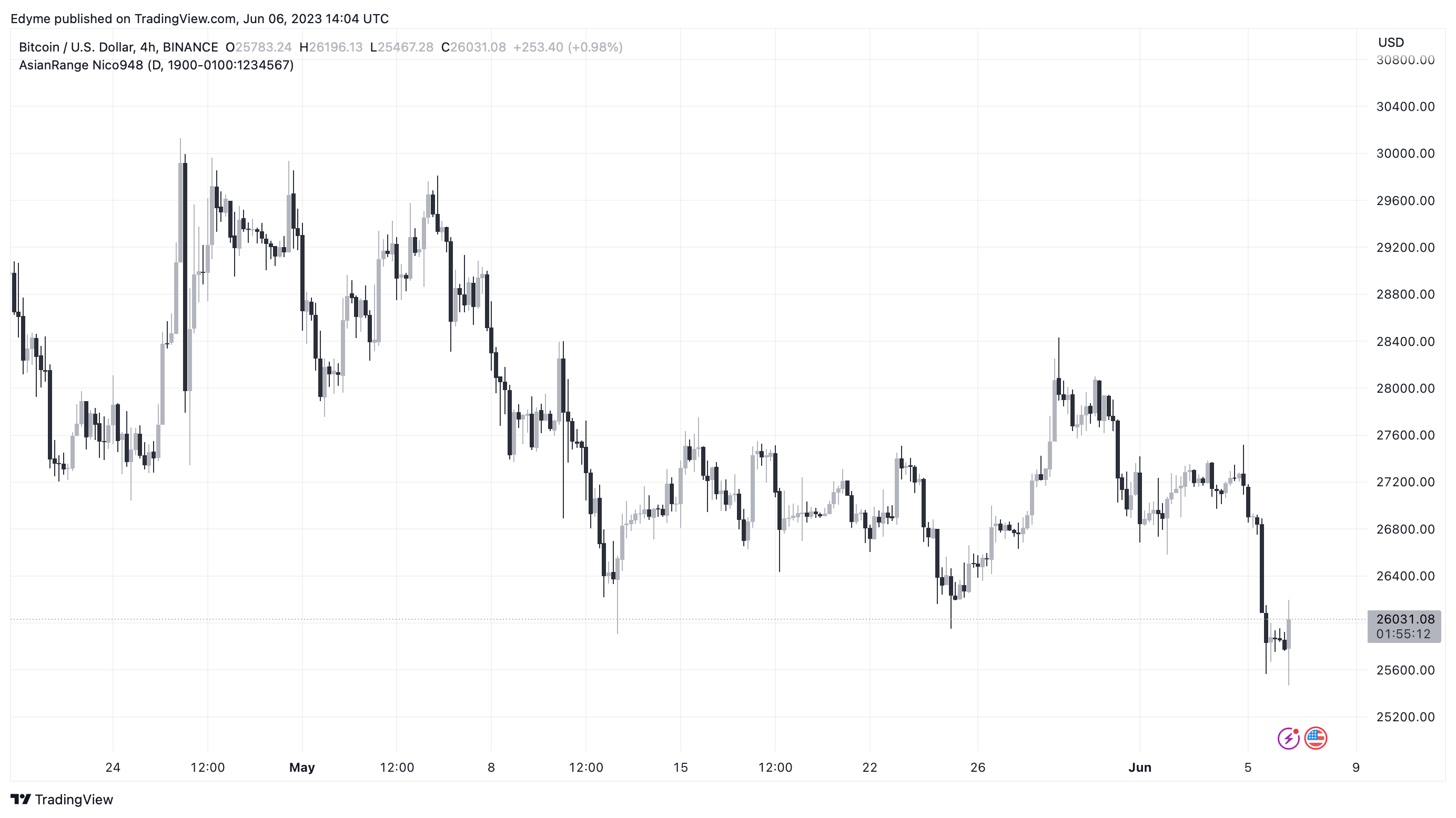 Meanwhile, at the time of writing, BTC currently trades below $26,000 with a 24-hour trading volume of $21 billion. An increase from the previously recorded daily trading volume of $11 billion seen last week Tuesday.