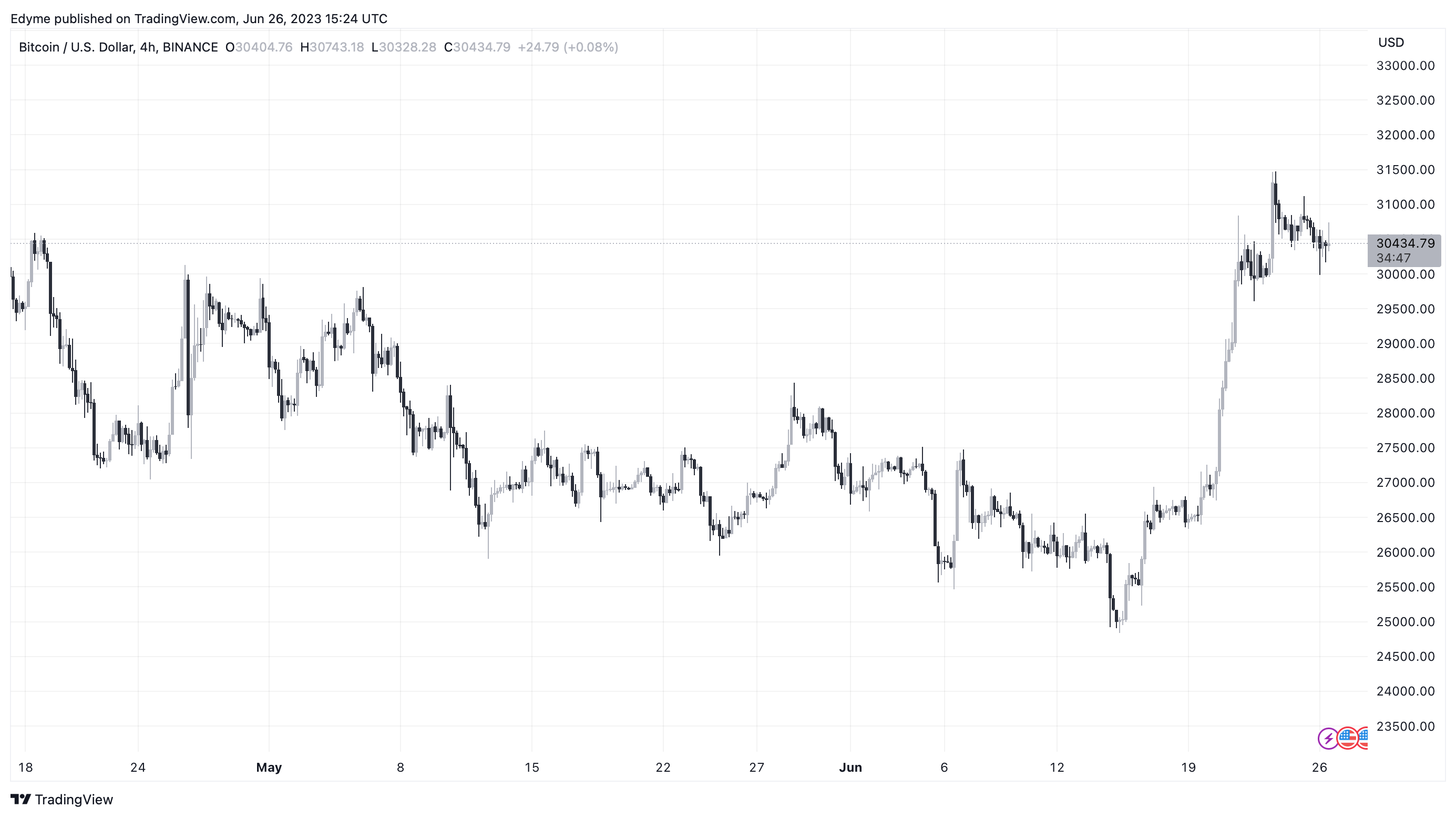 In the past day, Bitcoin experienced a slight dip of 0.6%, but its trading price continues to hover above the recently regained $30,000 benchmark. The past week has seen an addition of over $70 billion to Bitcoin’s market cap, boosting it from a low of $514 billion the previous Monday to exceed $580 billion today.