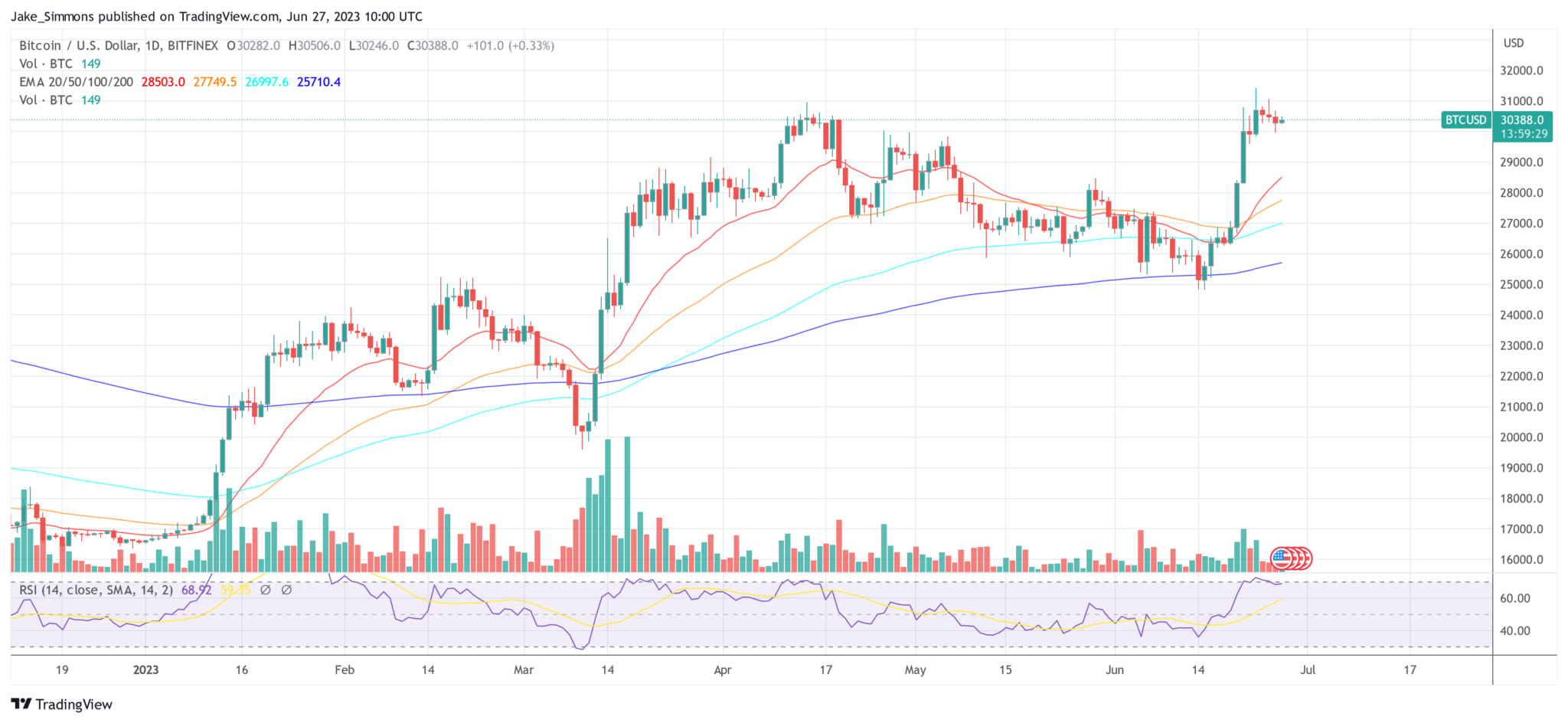 At press time, the BTC price stood at $30,388.