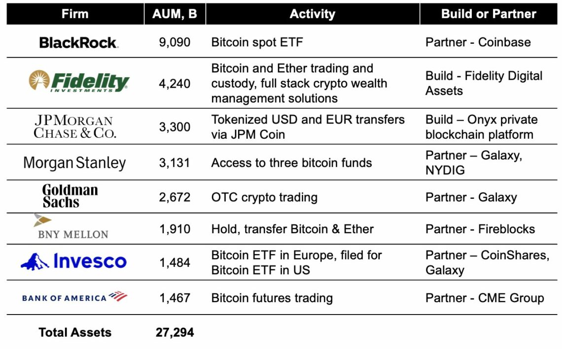 One such data point was provided yesterday by CoinShares’ Chief Strategy Officer Meltem Demirors via Twitter. As she writes, the Bitcoin spot ETF news is not the only story. Many of the largest financial institutions in the US are currently actively working to provide access to BTC and more. In total, there are more than $27 trillion in client assets waiting on the sidelines.