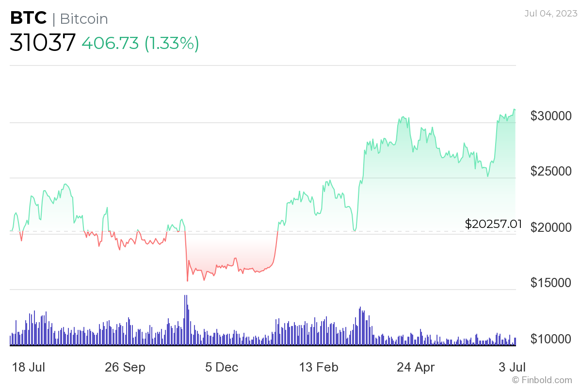 After Bitcoin (BTC) made a successful break of the psychologically important price level at $31,000, it is worth reflecting on its trends around the previous United States Independence Day, which indicate that the flagship decentralized finance (DeFi) asset has grown its value by half over the past year.