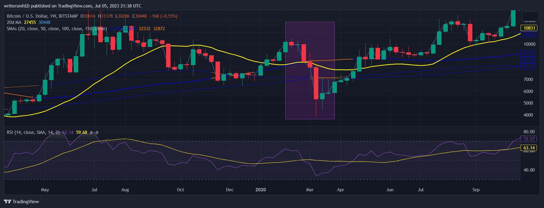 Back when the US stock market crashed because of the COVID-19 breakout, Bitcoin and other cryptos also did a similar behavior.