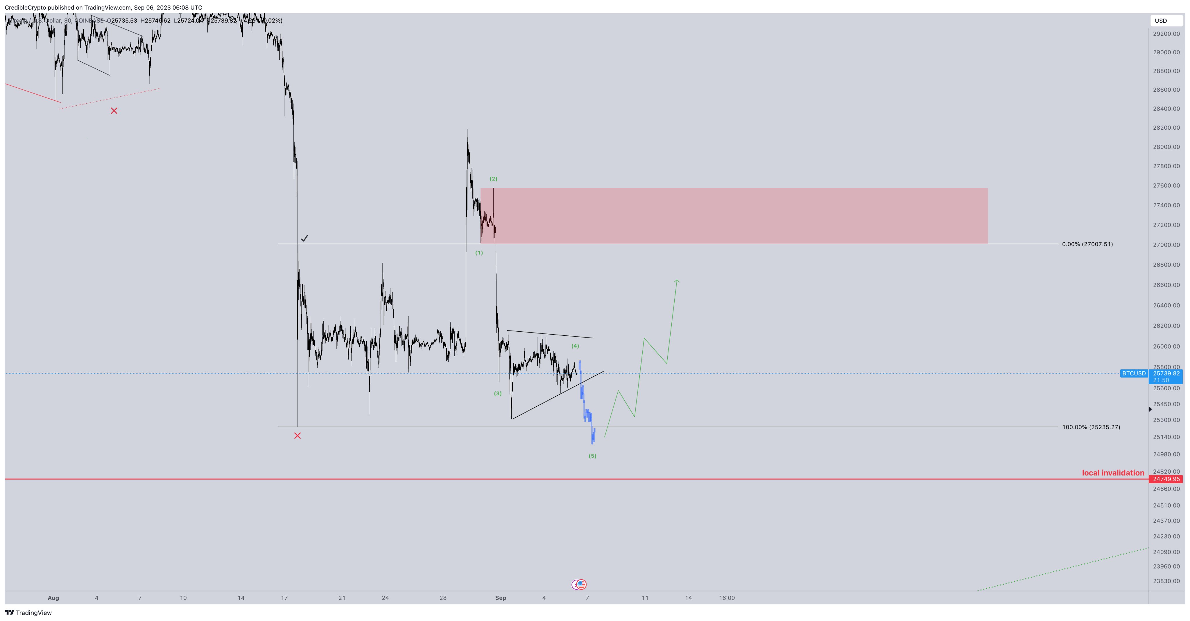 Alan previously highlighted $24,750 as the line in the sand for bulls to hold in order to protect the wider Bitcoin price uptrend.