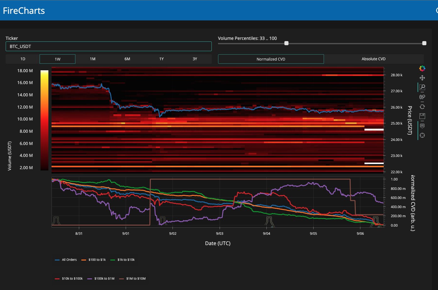 Bid support moved down to concentrate around $24,600 on the day, with that price level not seen on spot markets since March.