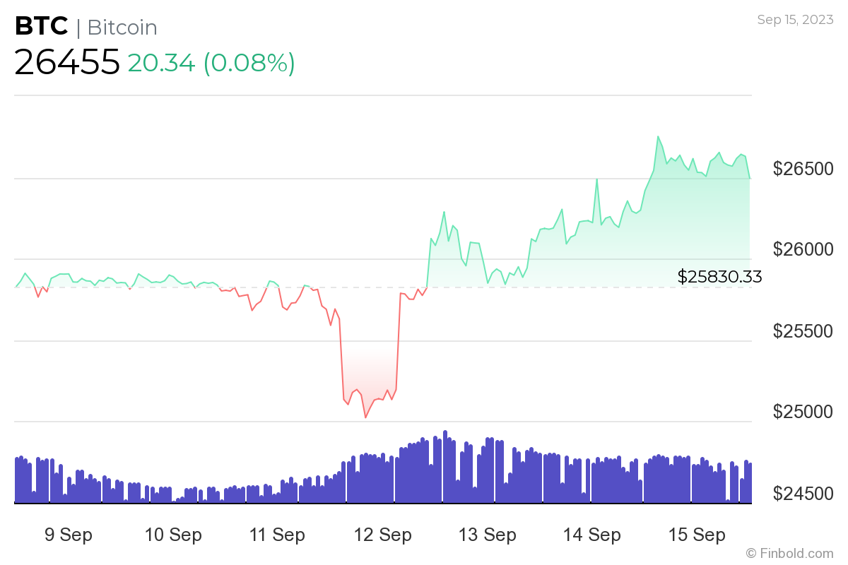 Meanwhile, Bitcoin was at press time changing hands at the price of $26,455, recording a 0.08% advance in the last 24 hours and gaining 2.42% across the previous seven days while still recording a loss of 9.14% on its monthly chart, as the latest data indicates.