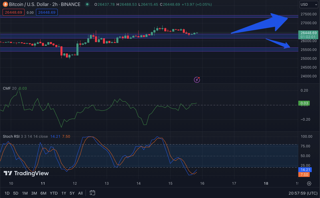 Furthermore, if Bitcoin fails to stay above the support level of $26,240, the next support level will be around $26,000. Although a downward break from this level could lead BTC towards the next significant support level of $25,800, surpassing the $26,699 resistance could result in a change in market dynamics and a move towards $27,000.