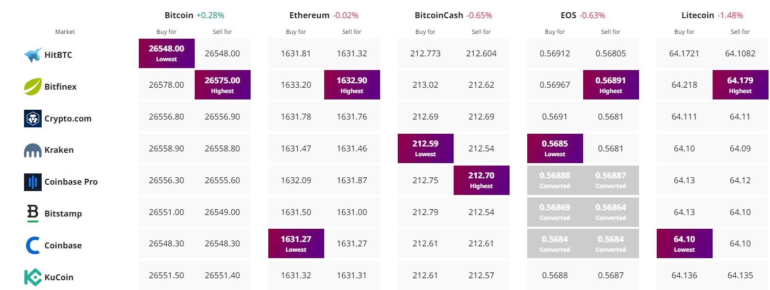 Find The Best Price to Buy/Sell Cryptocurrency