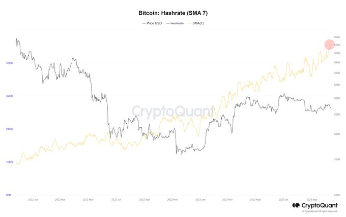 The hashrate and mining difficulty, two key metrics reflecting the fundamentals of the Bitcoin ($BTC) network, are currently on an upward trajectory and are in good health. However, it’s important to pay close attention to these indicators, especially if we witness a significant rise in Bitcoin transfers. This is the point at which we may begin to observe increased price volatility, and Bitcoin might exit its bearish grip.