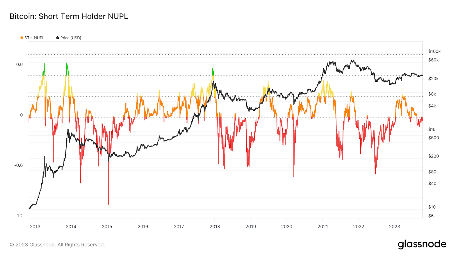 NUPL for STH takes into account only those UTXOs that are younger than 155 days. In other words, it calculates the unrealized profit/loss for new Bitcoin holders.