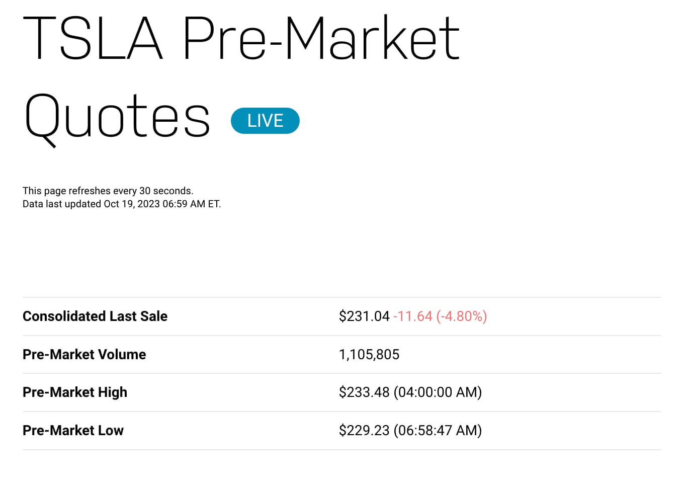 In the wake of Tesla‘s (NASDAQ: TSLA) underwhelming Q3 report, shares of the electric vehicle giant are poised to open lower on Thursday, October 19.