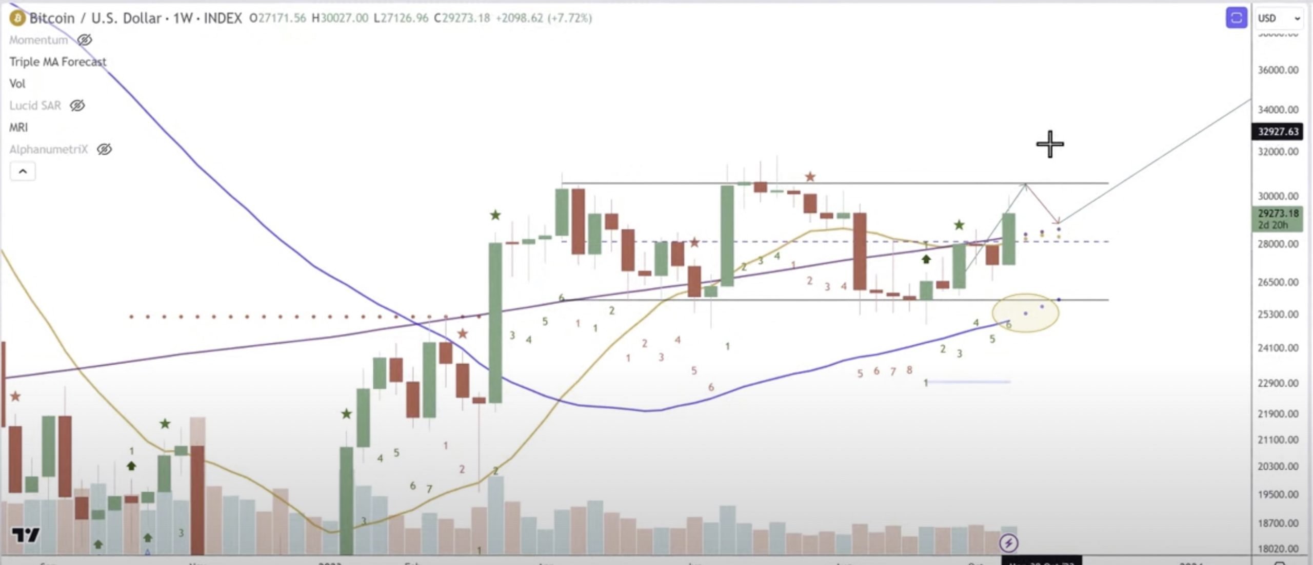Looking at the Bitcoin chart shared by the analyst, it can be seen that he predicts the largest cryptocurrency to drop to around $28,000 without surpassing the $31,000 threshold, which is the peak of the range in which BTC is currently moving. As of the time of writing, BTC is trading at $29,987 with a 1.23% increase in the last 24 hours.