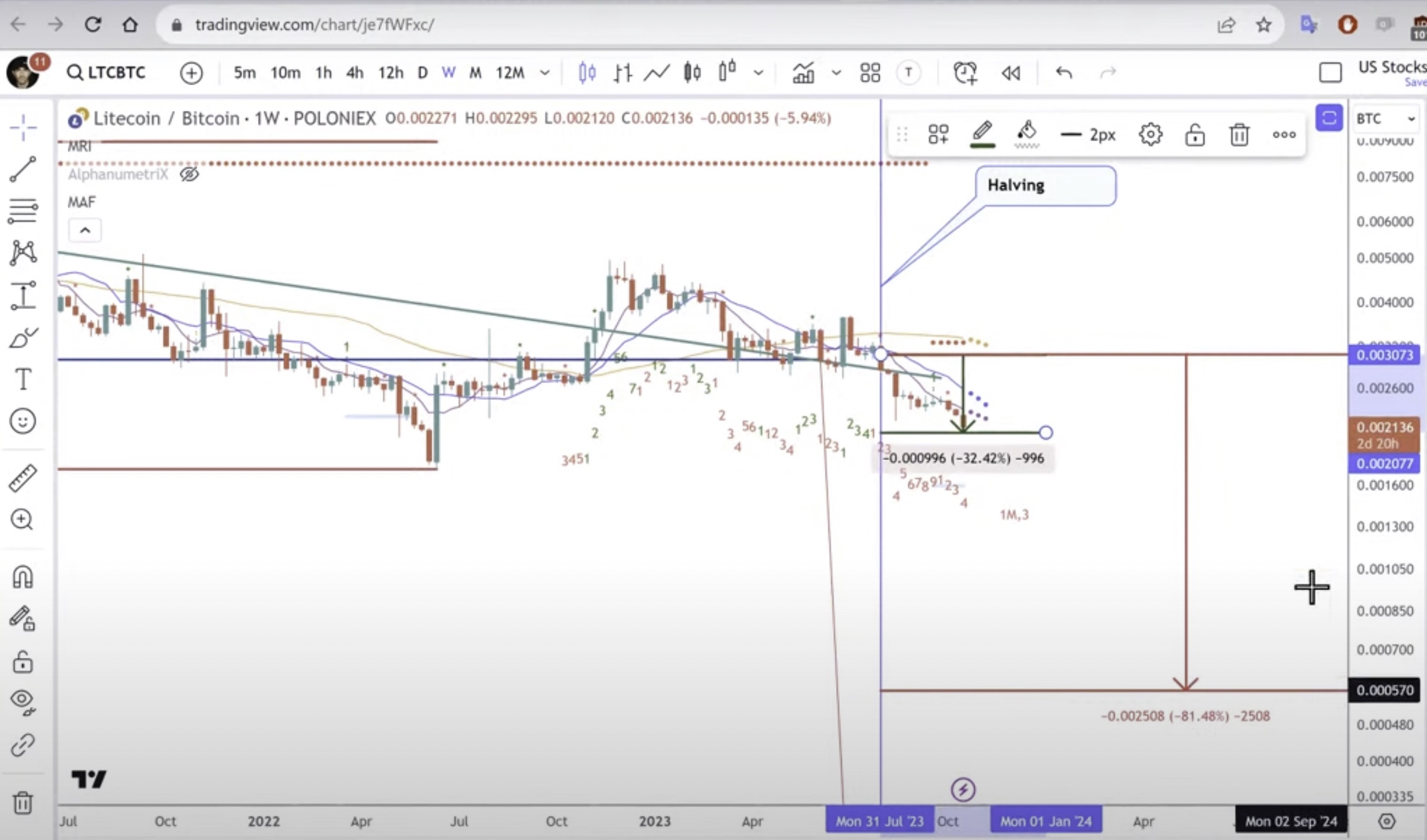 According to the analyst, the LTC/BTC trading pair is on the verge of a major collapse, which would result in an 80% drop in the price of the popular altcoin. Vays supported his collapse expectation by citing the 80% drop that occurred after the block reward halvings in 2015 and 2019.