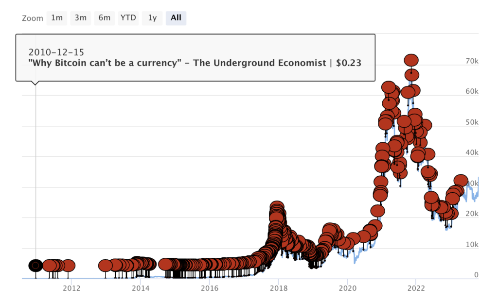 Both experts and casual commentators have foretold Bitcoin’s failure. Sources range from mainstream media to individual bloggers, showing broad skepticism.