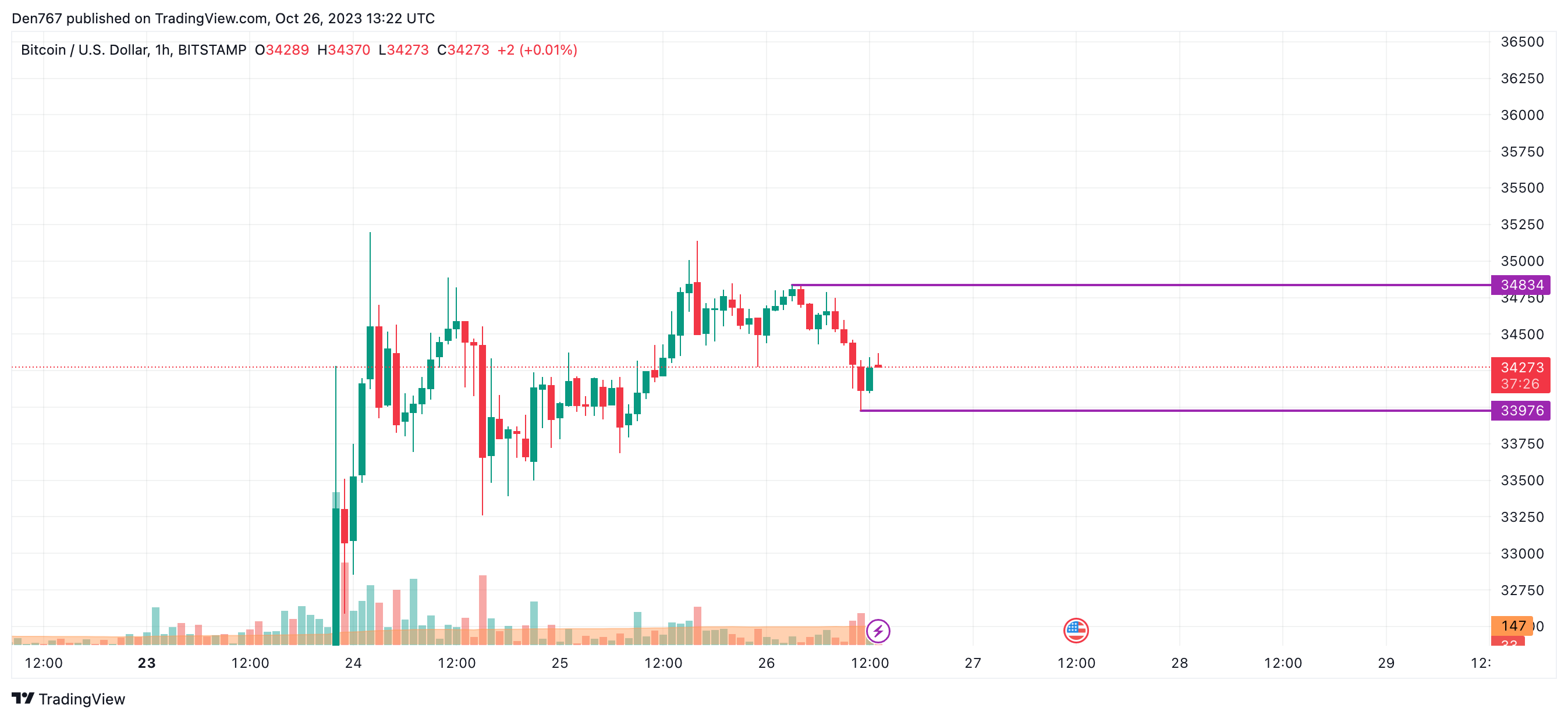 On the hourly chart, the price of BTC is trading near the local support level of $33,976. If the bears' pressure continues, the breakout may lead to a blast to the $33,500 area tomorrow.